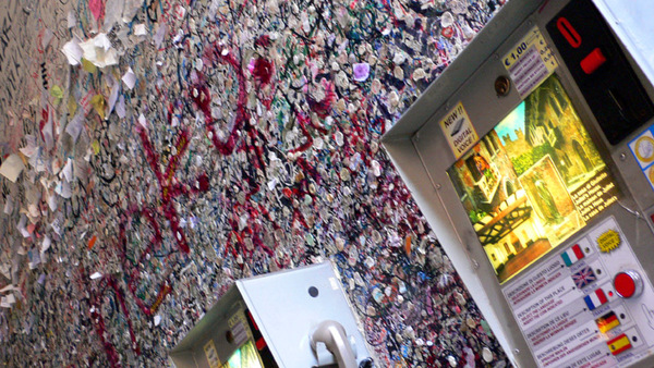 在旁邊的圍牆!不知從何開始,已黏滿了口香糖上貼著各式祈福的紙條!